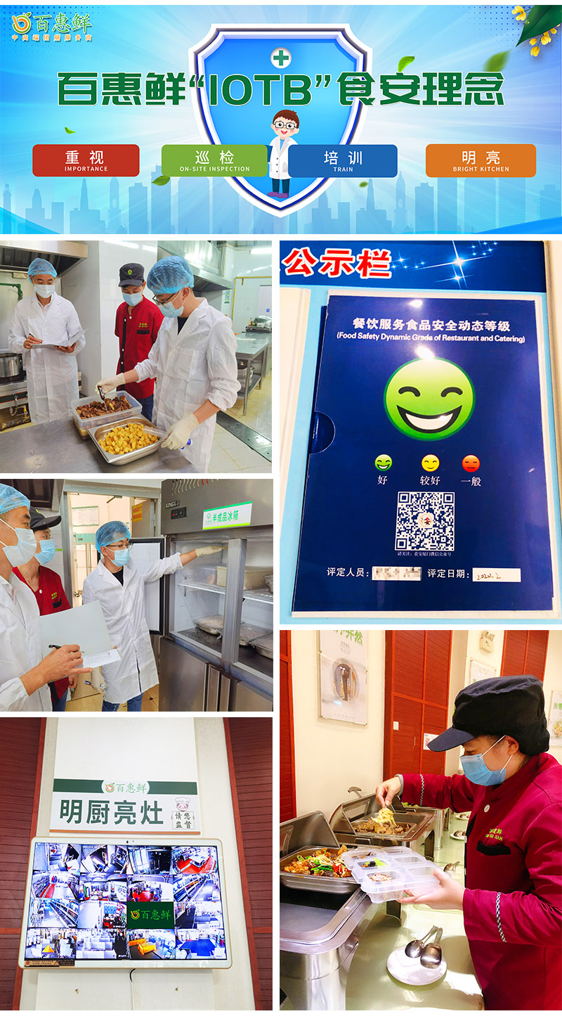 食材檢測、食品留樣、明廚亮灶、培訓(xùn)考核四重保障作為當?shù)厥袌霰O(jiān)督局評定的食品安全A級食堂,該機關(guān)食堂在食品安全上實行高標準制度,百惠鮮食安專員每天定期進行廚房衛(wèi)生巡檢,對當天要用的肉類、蔬菜、海鮮等食材進行抽檢,開餐前及時進行菜品留樣操作,保證食品安全及溯源渠道;食堂團隊成員定期接受食安培訓(xùn)和考核,合格方可上崗。疫情期間,每日餐廳消毒、查體溫、嚴格記錄每日食材的來源,并全部公開透明化,供大家監(jiān)督。